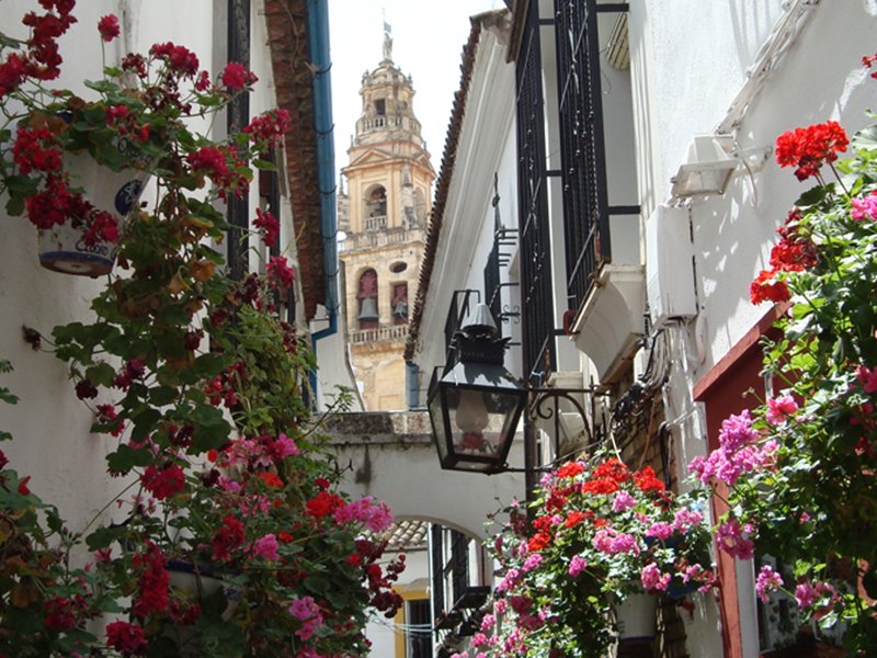 Если и существует самая красивая улочка в Еврейском квартале, то это улочка цветов. Она является одной из самых популярных в городе и стала одним из самых фотографируемых мест Кордобы. Причина в том, что оттуда вы можете увидеть башню мечети, и в сочетании с белыми фасадами и цветами этот вид незабываем.